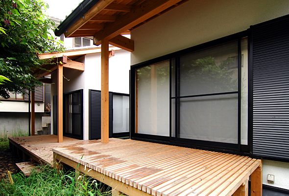 檜で作られた濡れ縁。外国産材では味わえない、檜の風合いと質感がこの家にはしっくりきます。 |