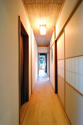 長く続く廊下。 無駄と思える部分も統一したデザインで仕上げると、 その見栄えに感動です。 |