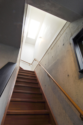 方角や立地条件により なかなか光を取り入れる事ができない階段も、 トップライト(天窓)などをうまく使い 照明のような明るい空間をつくります。 |