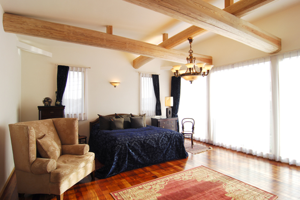 床は無垢の花梨、壁・天井は漆喰を施工し、杉の化粧梁や建具等も全てオーダー。 お客様の理想とこだわりをカタチにし、心地よい空間を実現しました。 |