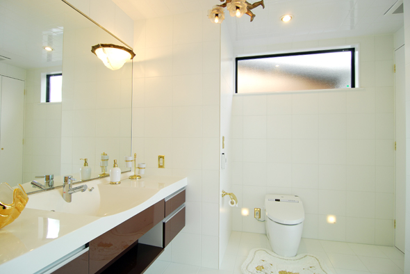 サニタリーは、日常の一般的な生活感を廃し、ホテルのような非日常的空間を実現。 広々として清潔感のあふれる贅沢な空間を演出しました。 |