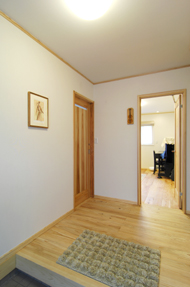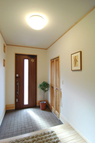 南向きの玄関はもれる光で とても明るく、靴箱は置かずに シューズインクロークで室内は スッキリとした空間に。 |