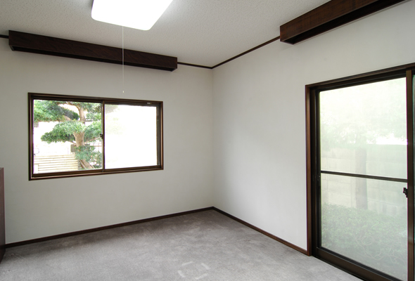 このお部屋でピアノを教えています。防音対策も重要です。床にはジュウタン、窓のサッシは2重サッシ、遮音性能を上げる為に断熱材はセルロースファイバーを採用しました。