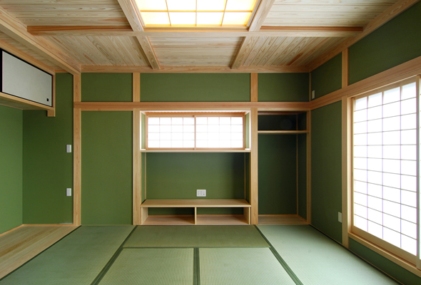 2階の暖かい和室です。タンス置き場も、置くものに合わせて造りました。