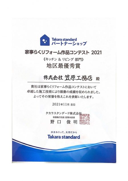 【キッチン&リビング部門】において、地区最優秀賞を受賞する事ができました!