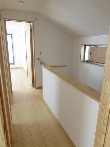 【3階 廊下】床:ウッドワン ピノアース 壁:ワンウィル 珪藻土