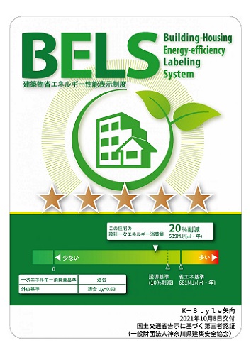 こちらの建物は【BELS最高ランク星5つ】の省エネ住宅です。