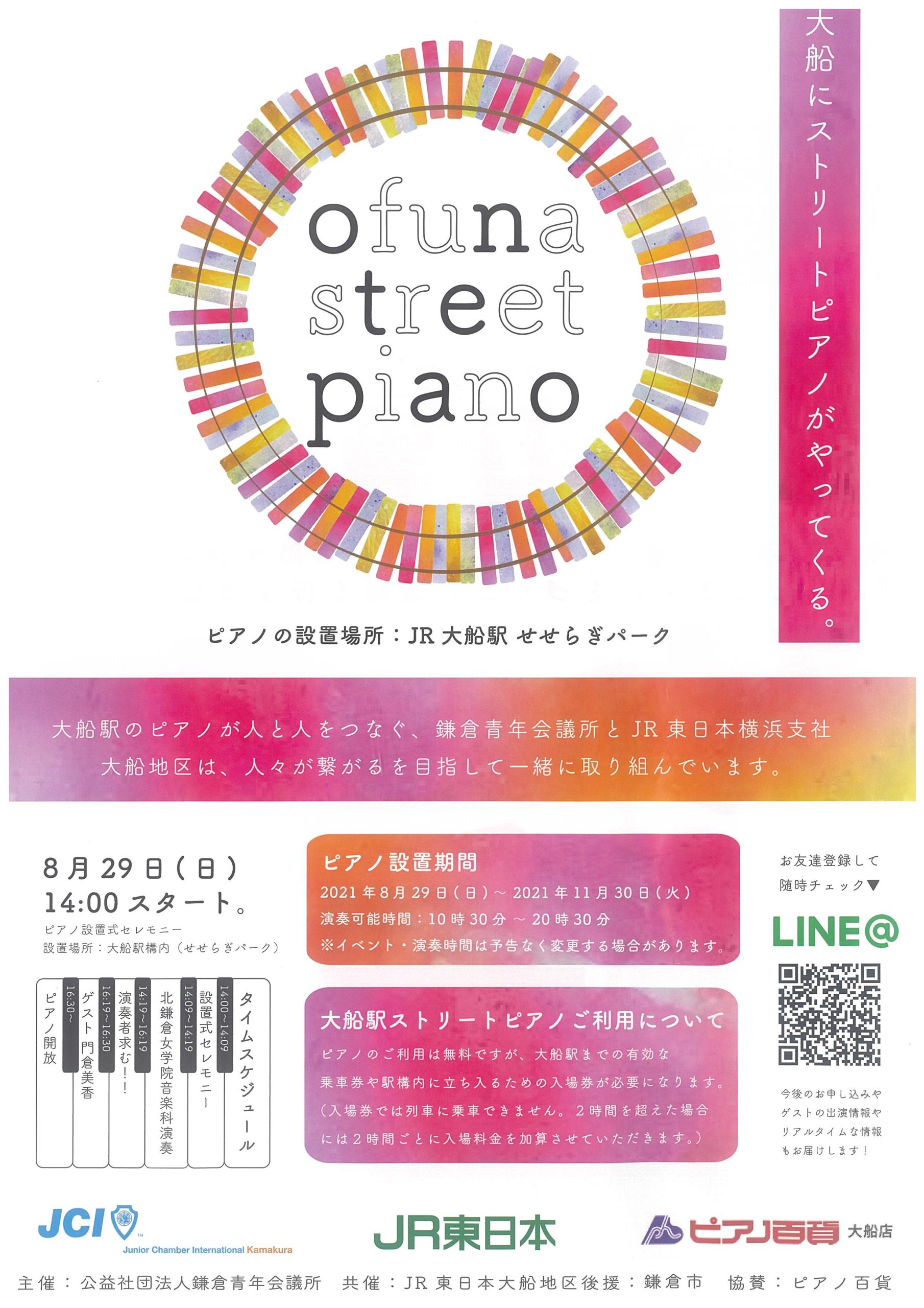 今、期間限定で大船の駅構内にピアノが設置されています。