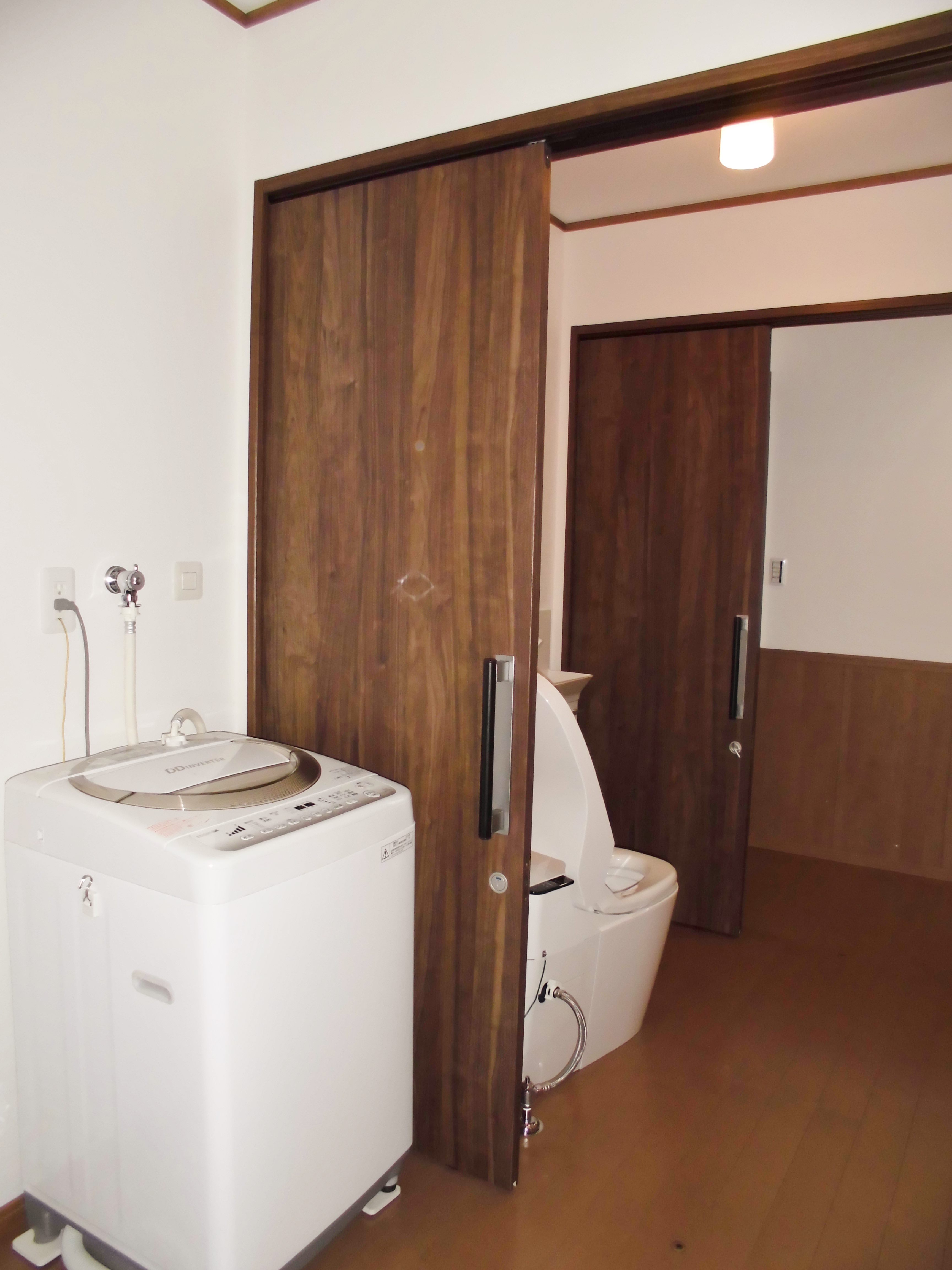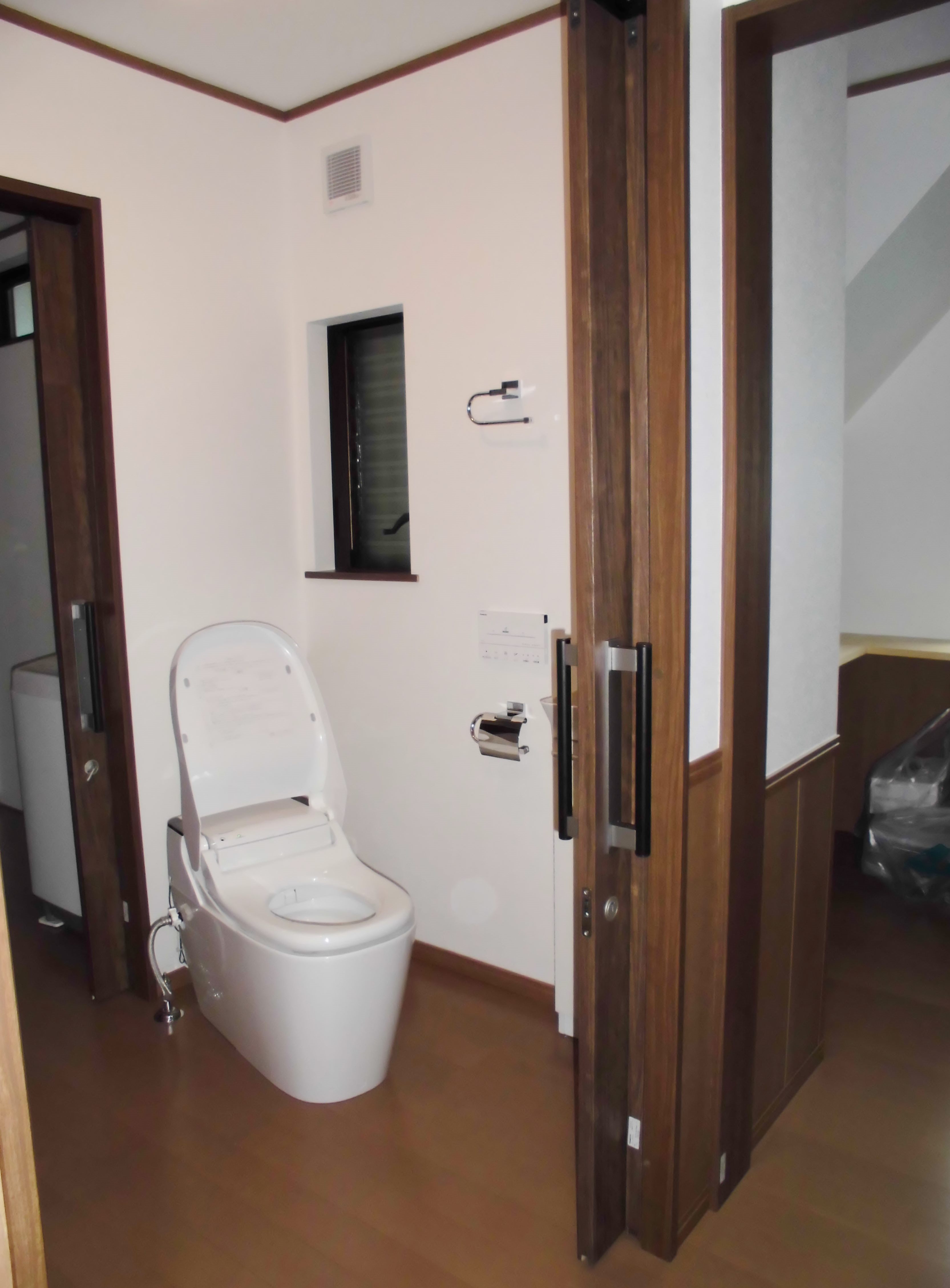 車イスでも入れるスペースを取り、便器は座りやすいよう斜めに設置