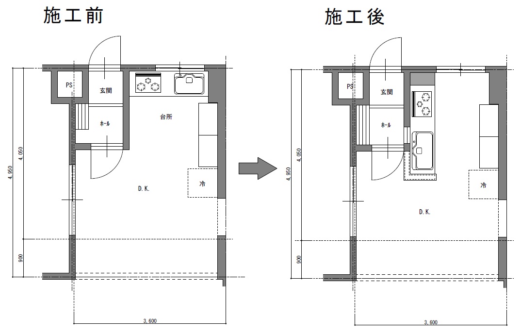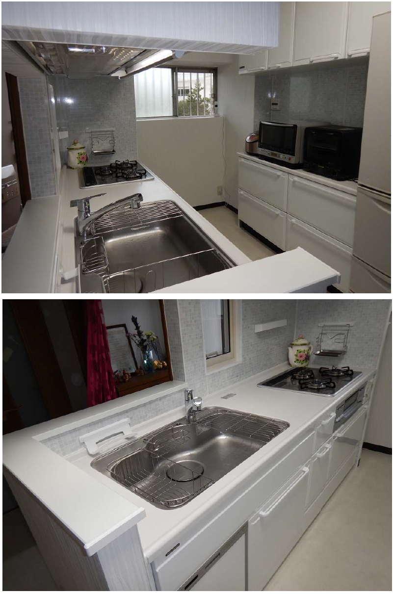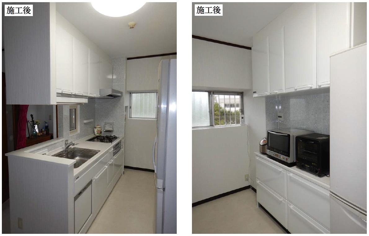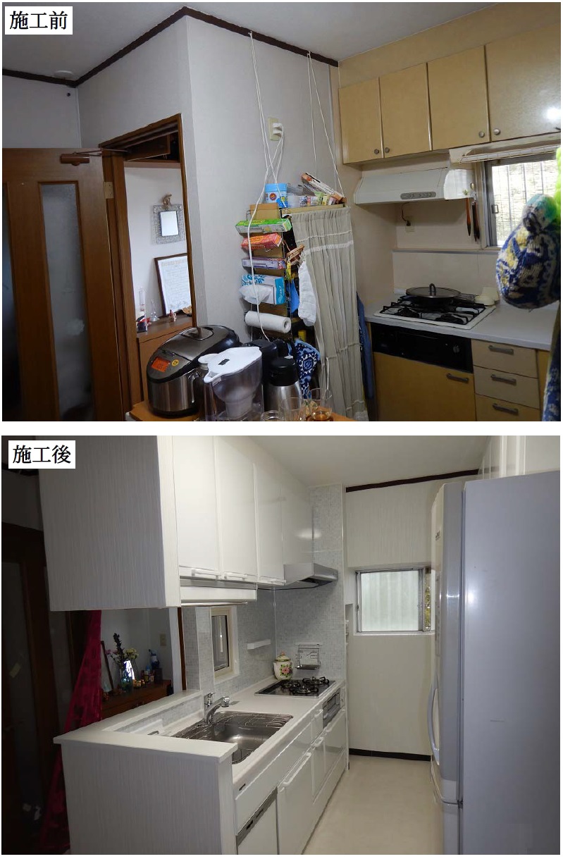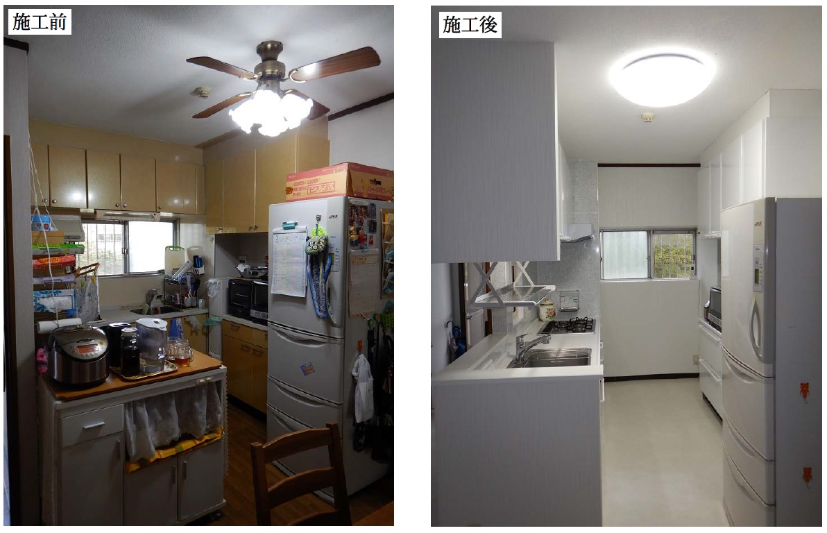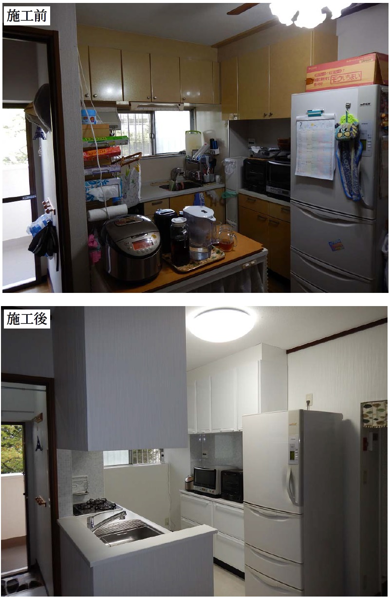 野庭団地・K様邸でのリビングキッチン改修の「施工前・施工後」です。