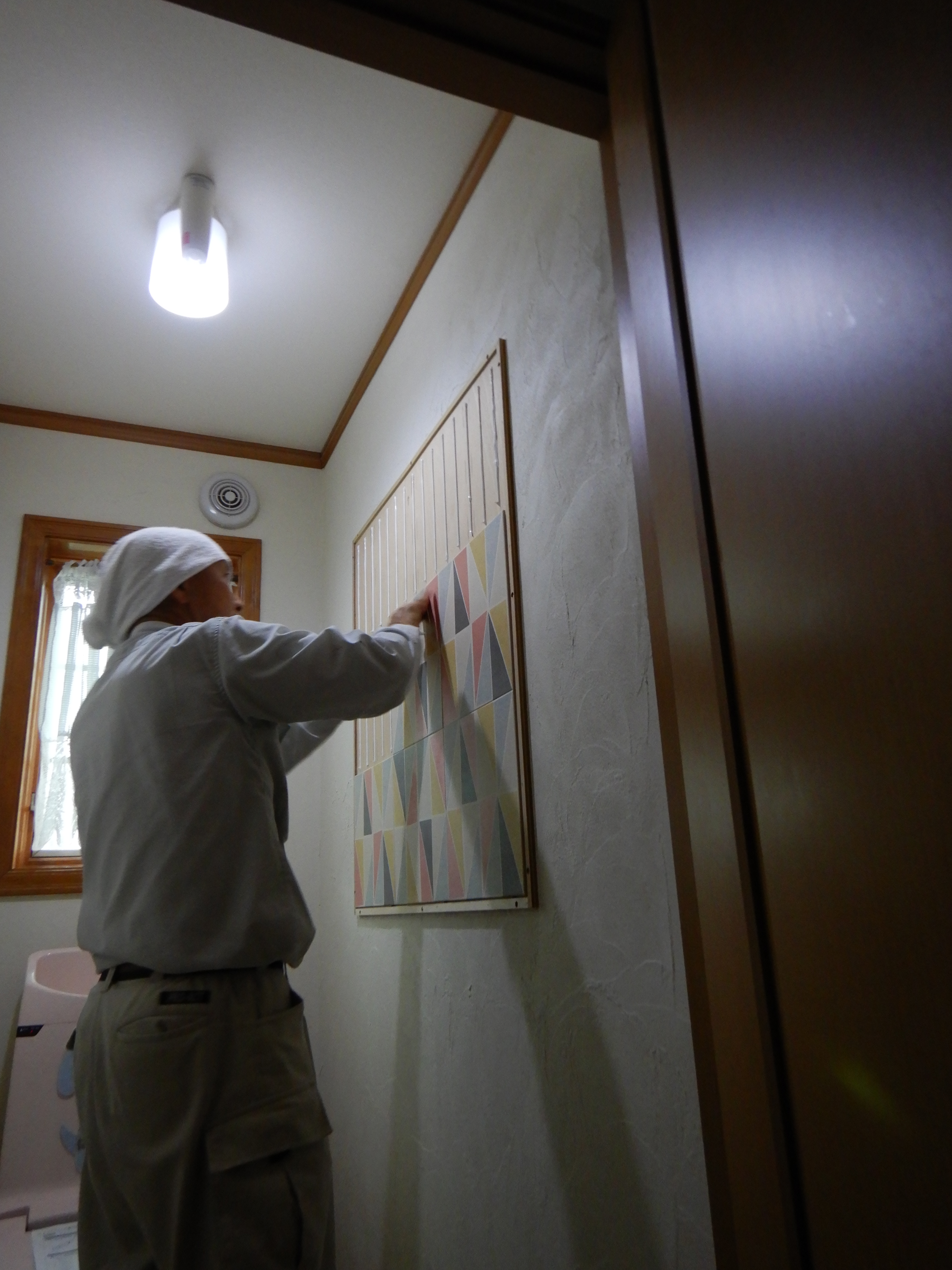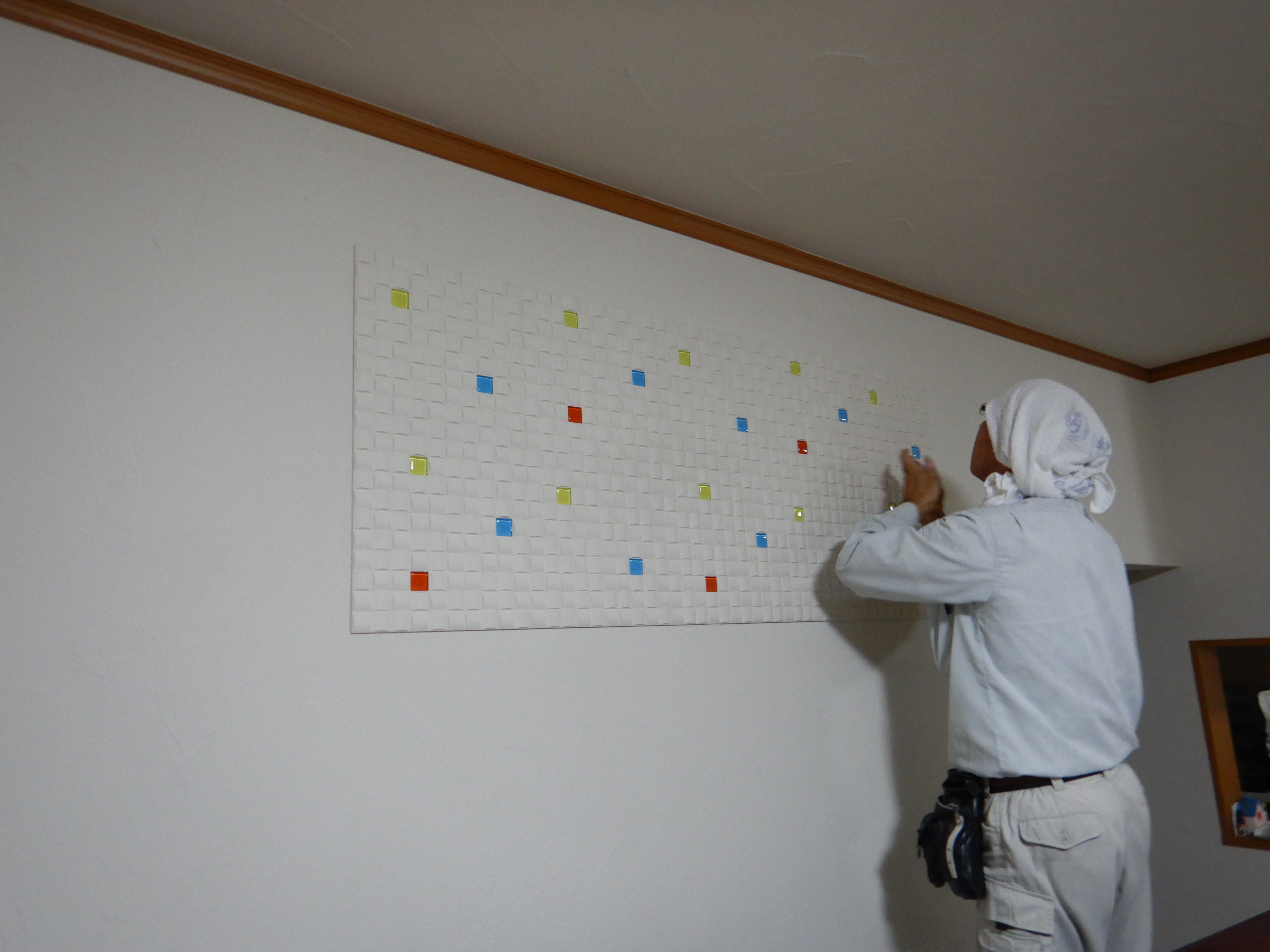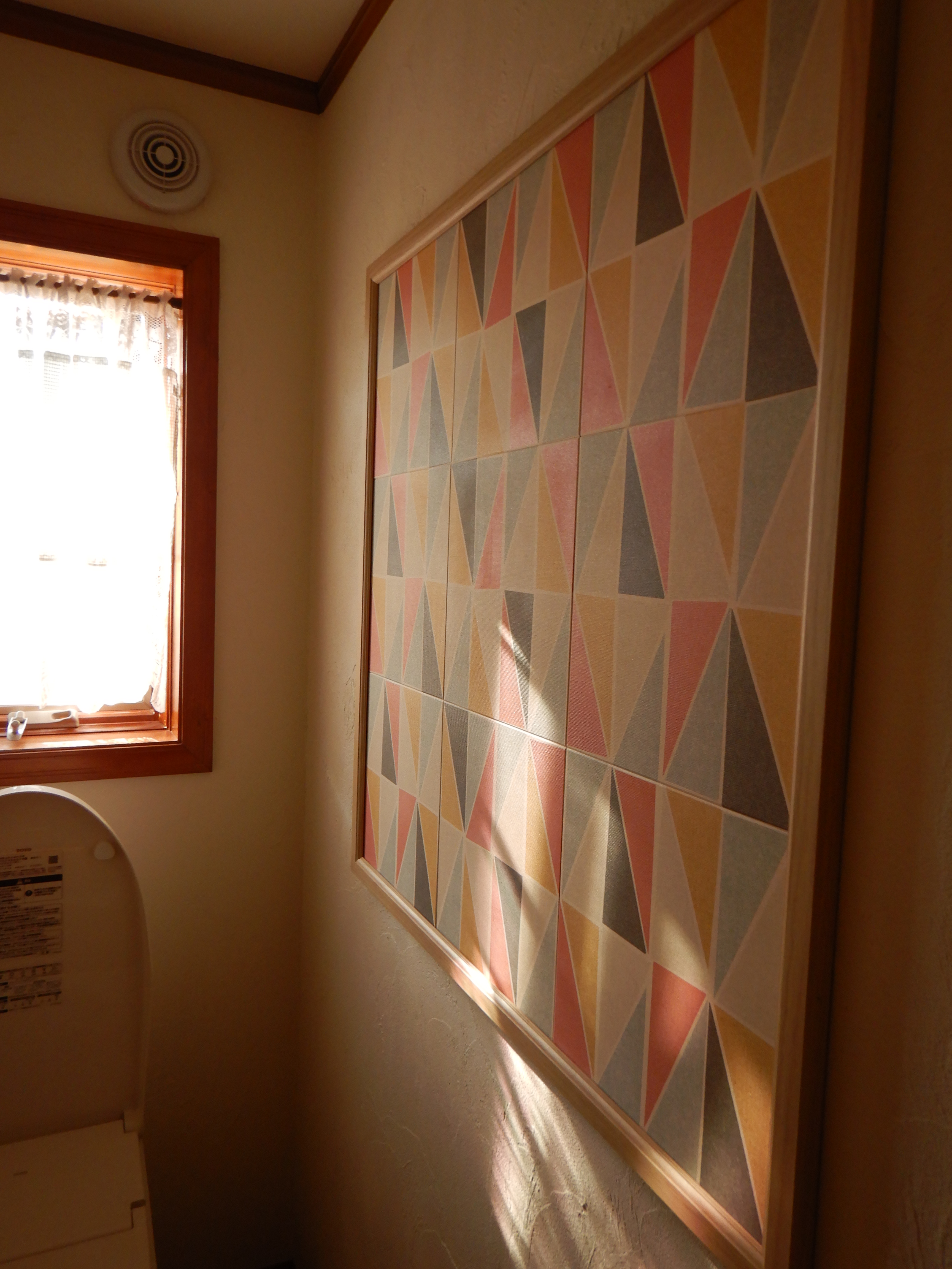 エコカラットという珪藻土よりも調湿機能がすぐれているタイルです。リビングとトイレに飾り絵のように貼りました。見えない空気のリフレッシュもお勧めですが、暮らしに遊び心も大切なことをお客様より教えていただきました^^