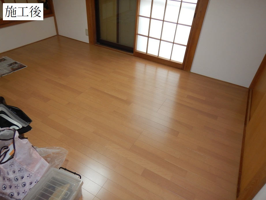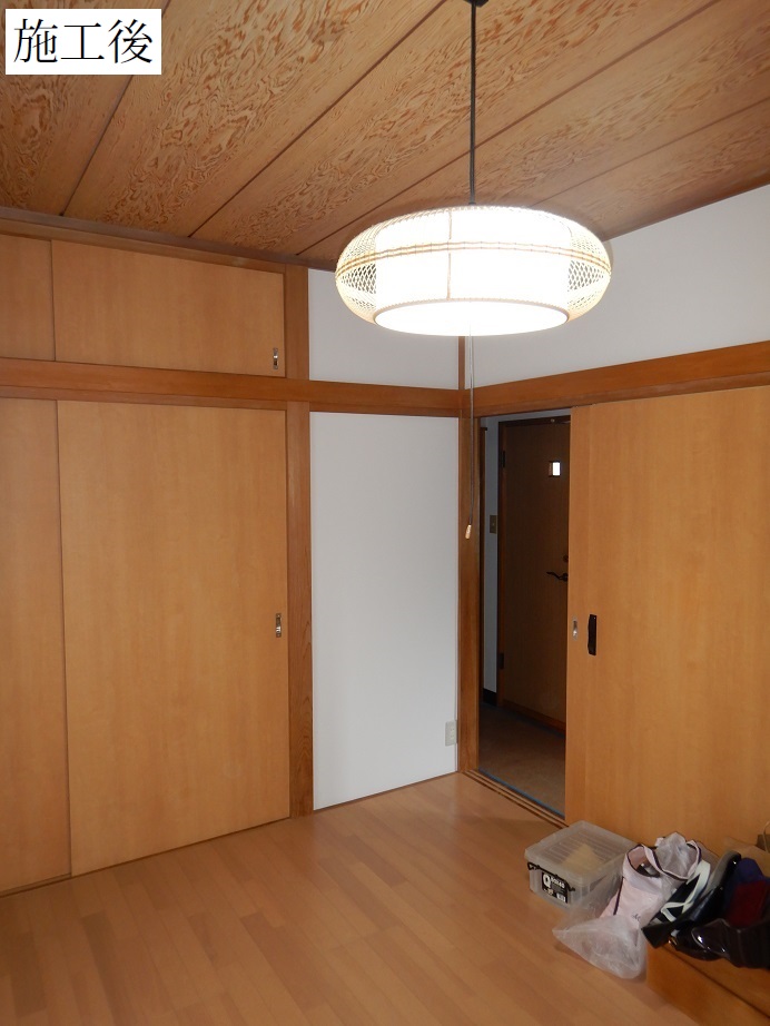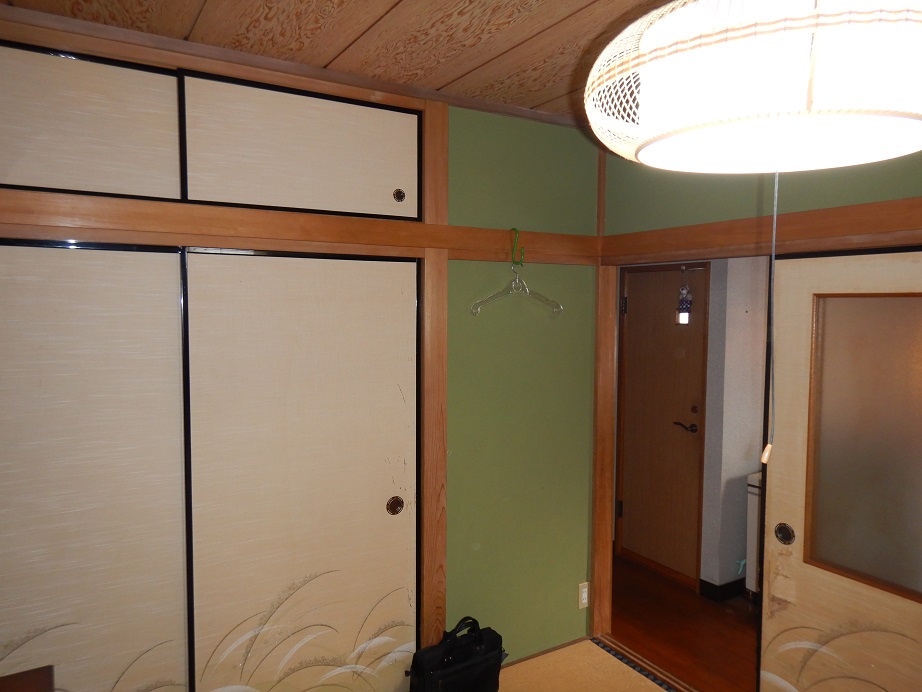まずは、床や家具の養生から。元の部屋の内装は、床と建具は杉板、壁と天井は和紙貼りです。