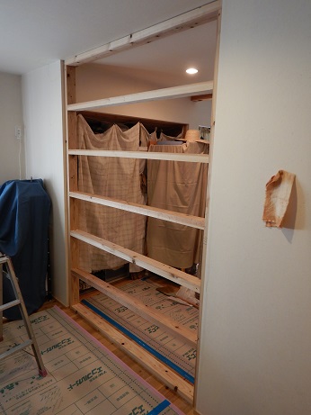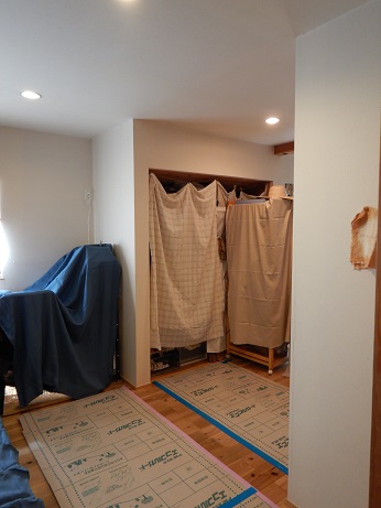 先日、子ども室スペースに間仕切壁を作る工事を行いました。