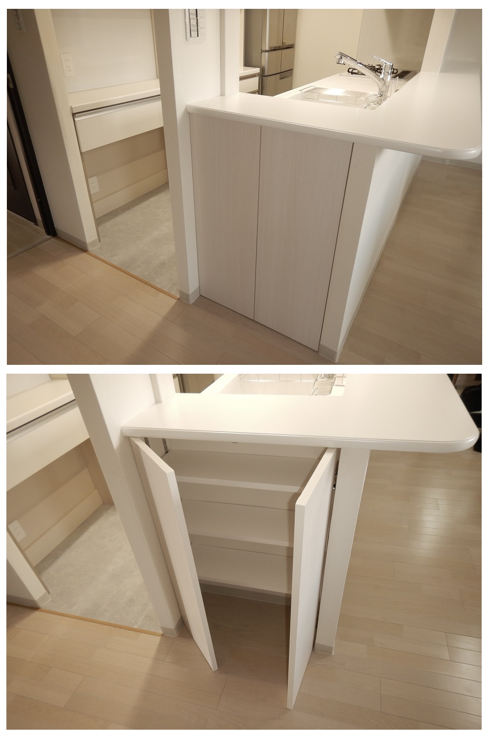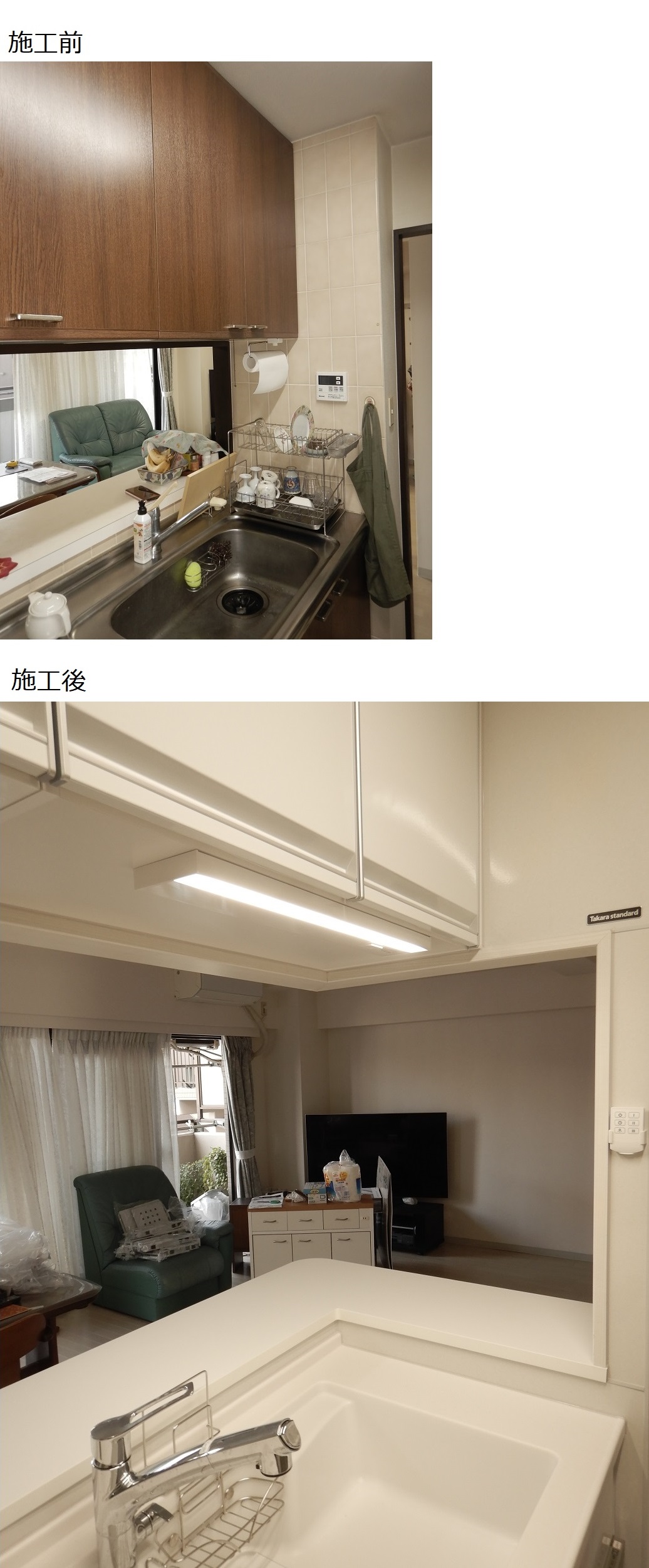リビングにつながる開口を広げ、より開放的なキッチンになりました。