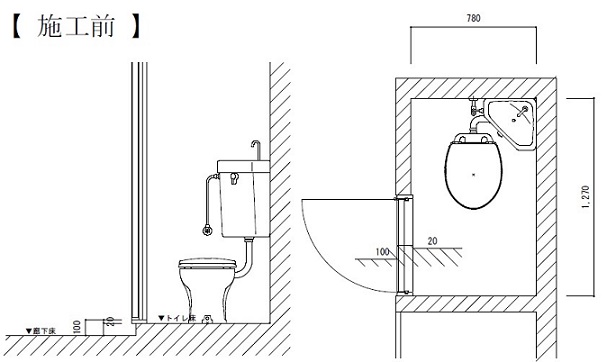 扉も開き戸で一度下がってからしかトイレに入ることができませんでした