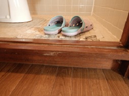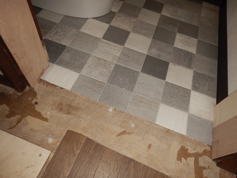 施工前のトイレは段差があり、お掃除もしにくい床でした