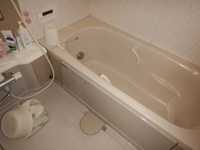 リフォーム前の浴室はきれいにお掃除されてもいつのまにか床やお風呂の蓋にカビ等が付いてしまい大変でした