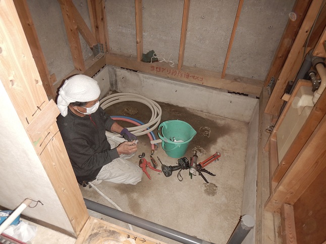 こちらは解体後給水の切り廻し作業風景です!