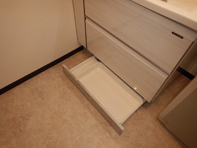 上から下までたっぷり収納ができ、その上キャビネットは全て使い勝手のよいスライド収納!